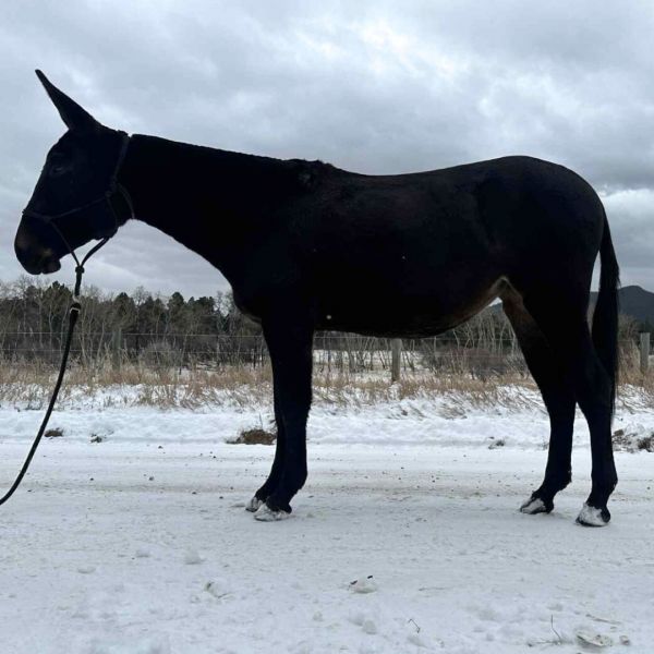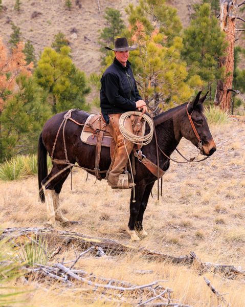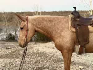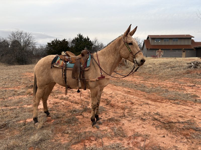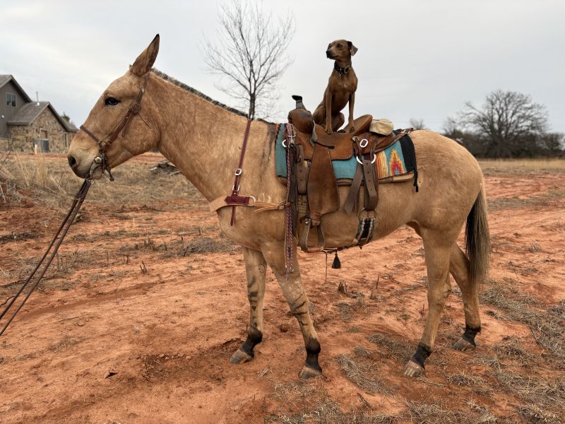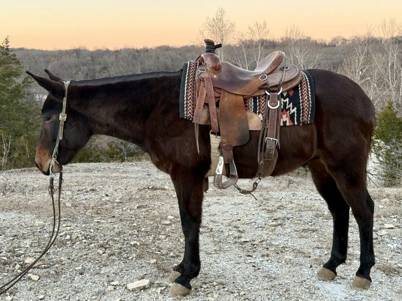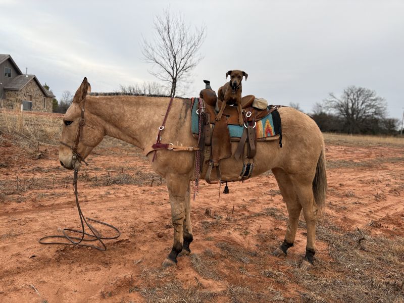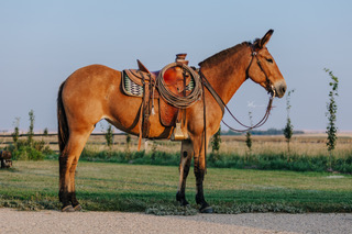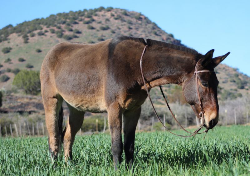 Woodrow - 9-year-old - horse mule: This fella is built like a tank and he's a ranchin' rockstar! Under saddle, Woodrow is an exceptional mover, soft in the mouth, moves off the leg and will happily neck rein. His resume includes - but is not limited to, ranching, hunting, packing...