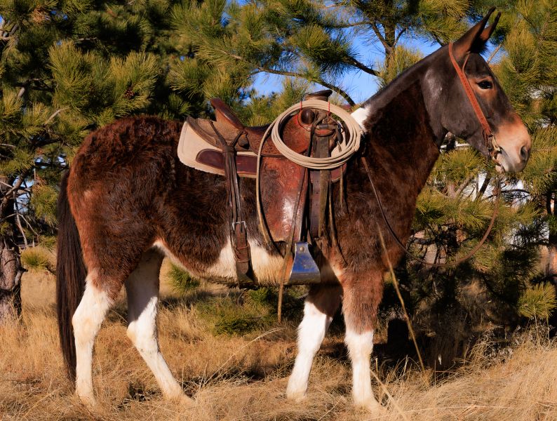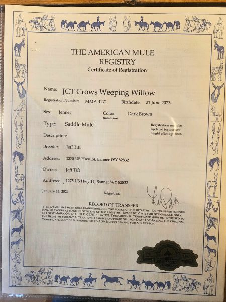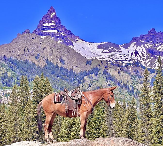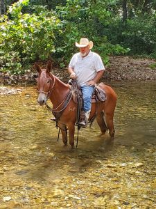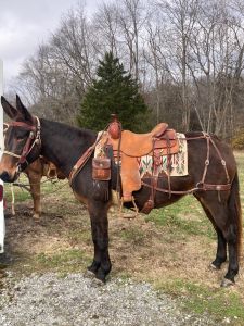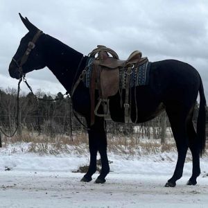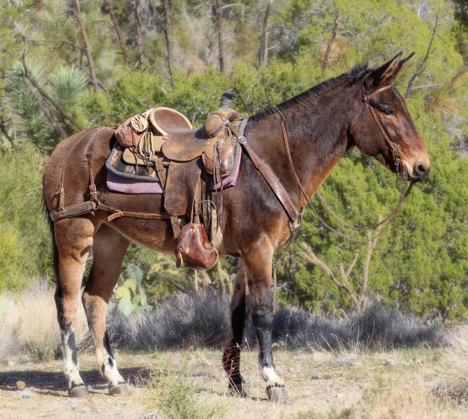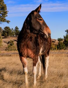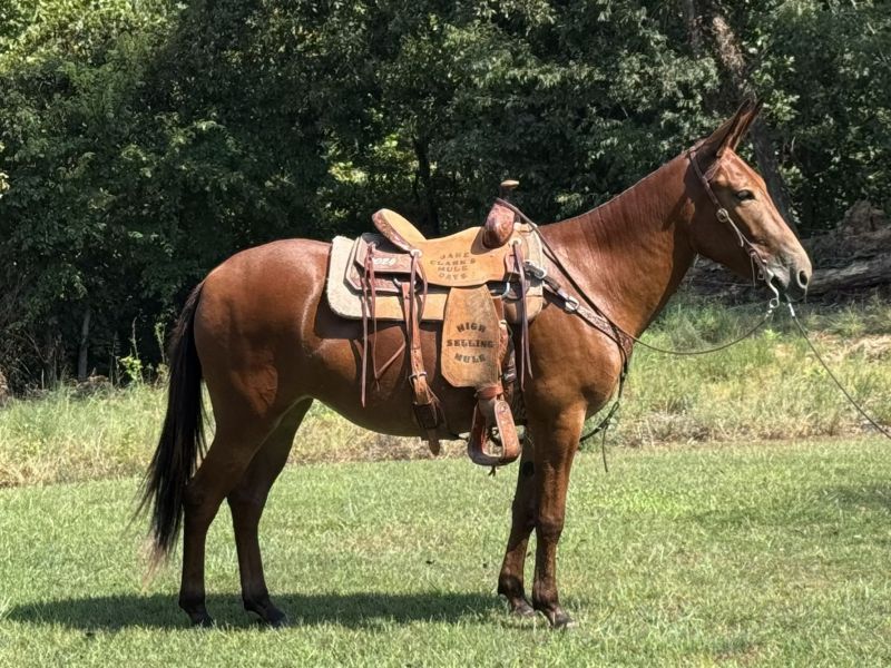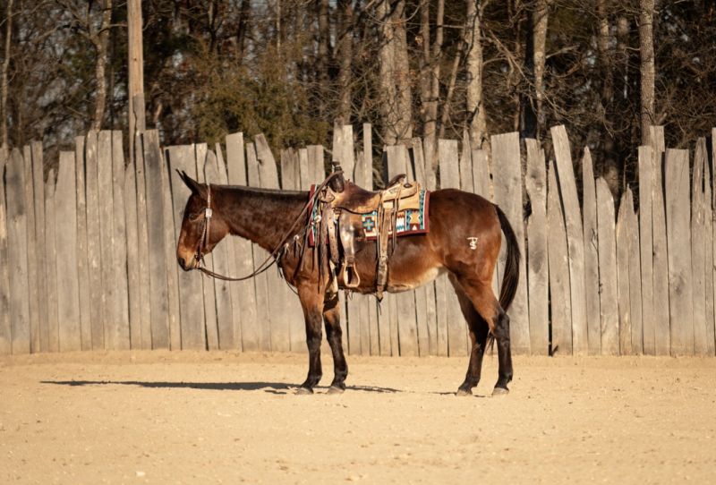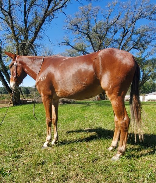 Woodrow - 9-year-old - horse mule: This fella is built like a tank and he's a ranchin' rockstar! Under saddle, Woodrow is an exceptional mover, soft in the mouth, moves off the leg and will happily neck rein. His resume includes - but is not limited to, ranching, hunting, packing...